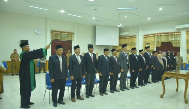 Sebanyak 14 orang dilantik, Pelantikan dan pengambilan sumpah dipimpin langsung oleh Pj. Bupati Asra, Senin (7/10/24) sore di aula Setdakab setempat.