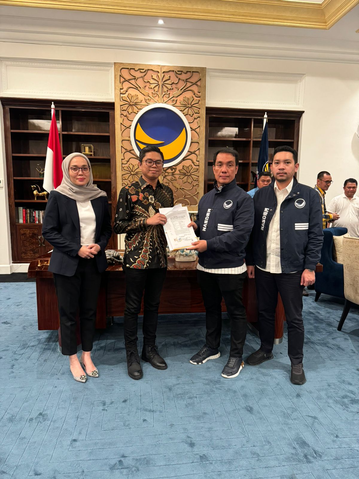 Surat dukungan dalam bentuk form B1.KWK diserahkan oleh Fauzi H Amro, Ketua DPP NasDem Korwil Sumatera III di NasDem Tower, Jakarta pada Rabu (14/8/2024).