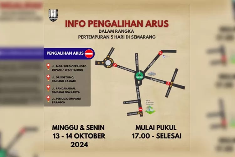 “Untuk pengalihan ruas jalan, bagi masyarakat yang akan melalui Jalan Soegijopranoto bisa lewat Jalan Indraprasta.”