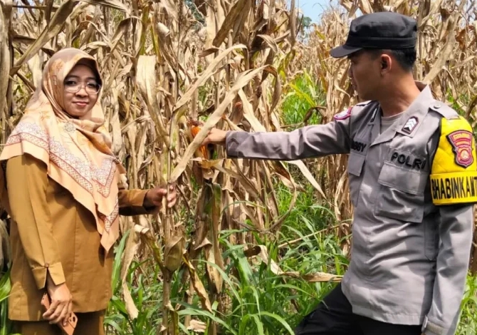 Bhabinkamtibmas Polsek Lengkiti Cek Tanaman Jagung, Pastikan Ketahanan Pangan Warga OKU