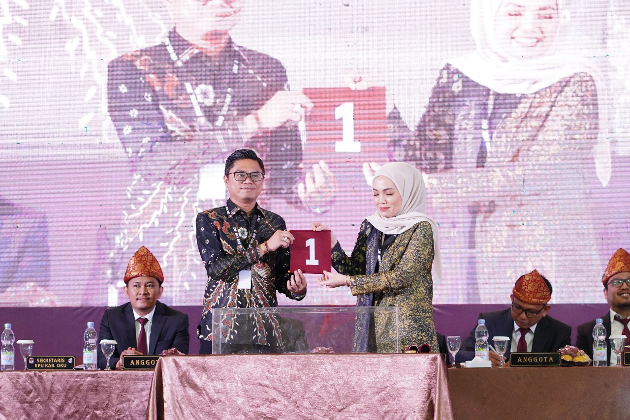 Baturaja,transnewss.com – Pasangan Calon Bupati (Cabup) dan Calon Wakil Bupati (Cawabup) Ogan Komering Ulu (OKU), Yudi Purna Nugraha dan Yenny Elita Sofyan Sani (YPN YESS), mendapatkan nomor urut 1 pada Pengundian Nomor Urut pasangan Cabup – Cawabup OKU, di BIL Hotel Baturaja, Senin (23/9/2024).