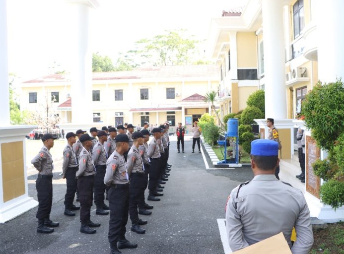 “Kapolres OKU dalam arahannya menyampaikan selamat datang kepada 23 Siswa Diktukba Polri Gel. II SPN Polda Sumsel dalam rangka Latihan Kerja (LATJA) di Polres OKU.