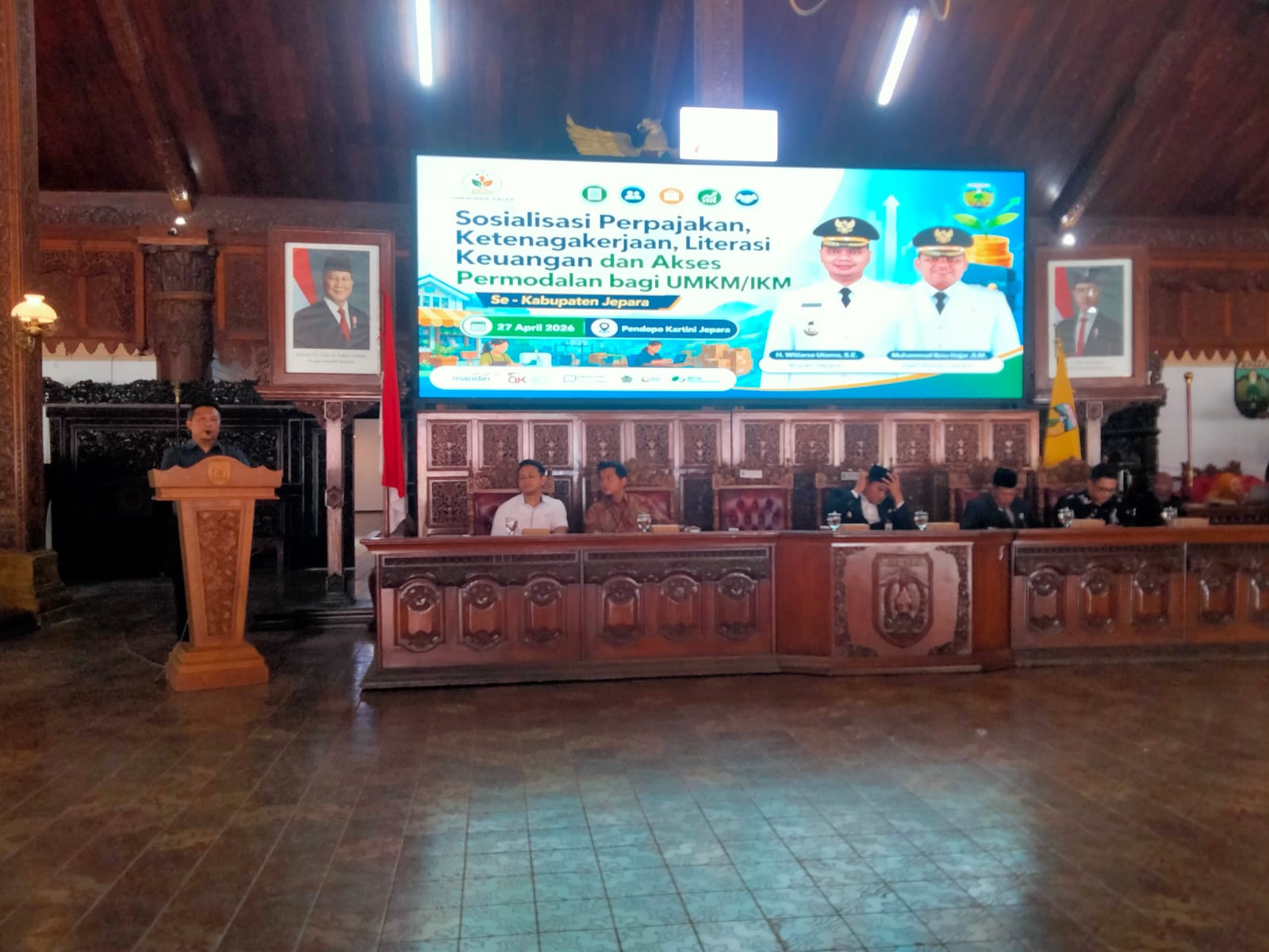 JEPARA, transnewss.com – Pemerintah Kabupaten Jepara, Jawa Tengah, terus berupaya meningkatkan kapasitas pelaku usaha mikro, kecil, dan menengah (UMKM) serta industri kecil dan menengah (IKM). Upaya tersebut diwujudkan melalui kegiatan Sosialisasi Perpajakan, Ketenagakerjaan, Literasi Keuangan, dan Akses Permodalan yang digelar di Pendopo Kabupaten Jepara, Senin (27/04/2026).
