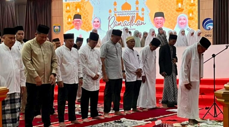OKU, transnewss.com – Dalam rangka Bulan Suci Ramadhan 1447 Hijriah/2026 Masehi, unsur Forum Koordinasi Pimpinan Daerah (Forkopimda) Kabupaten Ogan Komering Ulu (OKU), bersama Kapolres OKU AKBP Endro Aribowo, S.I.K., M.A.P., melaksanakan Shalat Isya dan Tarawih secara berjamaah.
