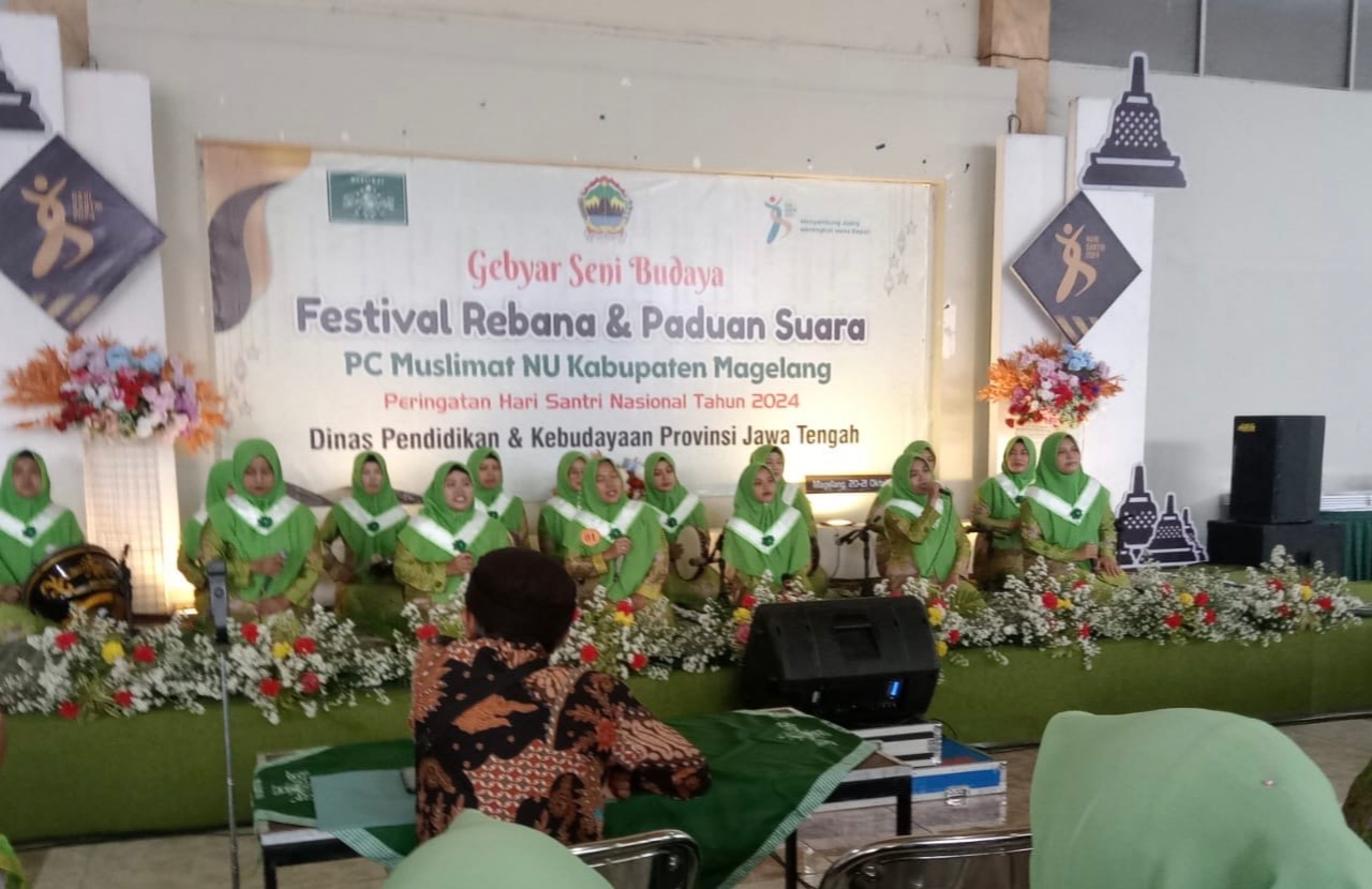 Magelang, transnewss.com – ” Dalam rangka memperingati Hari Santri Nasional, PC Muslimat NU Kabupaten Magelang bersama Dinas Pendidikan dan Kebudayaan Provinsi Jawa Tengah menggelar Gebyar Seni Budaya Festival Rebana dan Paduan Suara di Gedung PCNU Kabupaten Magelang, Minggu (20/10/2024).