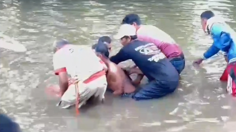 Menggunakan perahu, perlahan-lahan warga menghampiri jasad korban dan dengan hati-hati mereka mengevakuasinya dari sungai ke daratan. Korban ditemukan dengan kondisi kaki dan tangan penuh luka akibat digigit buaya.