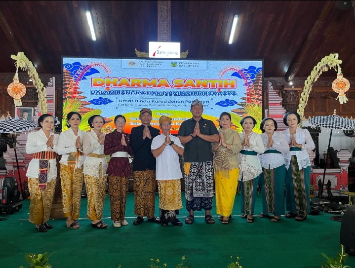 JEPARA, transnewss.com – Dalam rangka memperingati Hari Raya Nyepi Tahun Baru Saka 1948, umat Hindu wilayah Pati Raya yang meliputi Pati, Kudus, Jepara, Rembang, Blora, dan Grobogan menggelar upacara Dharma Shanti. Acara berlangsung khidmat namun meriah pada Minggu (12/04/2026) di Pendopo Kabupaten Jepara, Jawa Tengah.