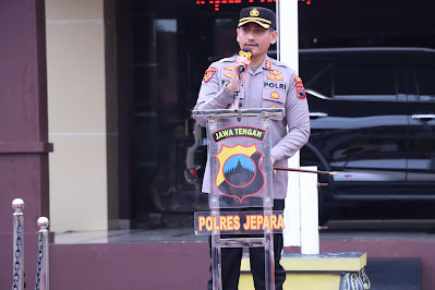 Kapolres Jepara AKBP Erick menyampaikan atensinya kepada seluruh personel yang mengikuti apel pagi. Salah satunya kedisiplinan anggota saat berdinas menjalankan tugas melayani masyarakat.