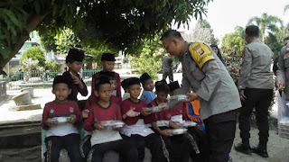 Kapolres Lubuklinggau berikan makan bergizi kepada anak SD 48 kota Lubuklinggau Dalam Kegiatan Jum’at Berkah
