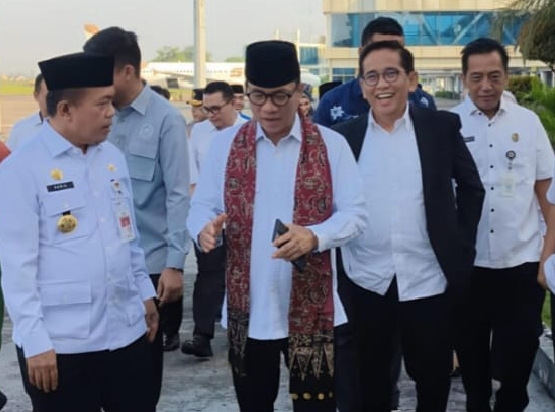 Setibanya di Bandara Sultan Thaha Jambi pukul 07.15 WIB, Menteri Yandri Susanto disambut Gubernur Jambi Al Haris, Ketua DPRD Provinsi Jambi Hafish Fattah, jajaran Forkopimda, serta Wakil Wali Kota Jambi Diza Hazra Aljosha.