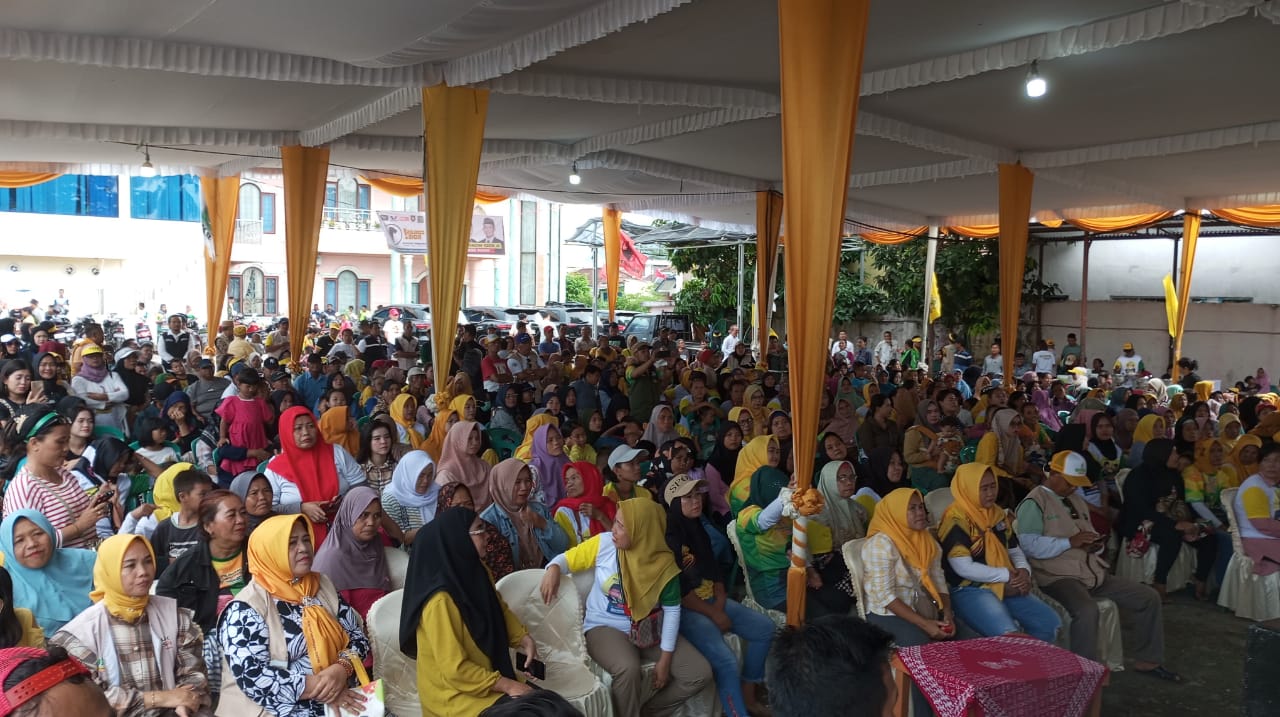Kampanye dialogis berlangsung di lapangan terbuka, dari pantauan para awak media terlihat masyarakat begitu antusias datang berbondong-bondong menuju lokasi kampanye di selenggarakan.