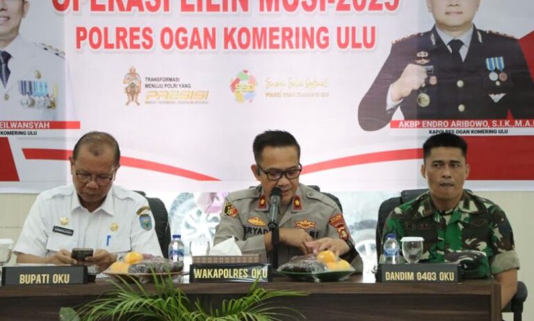 Baturaja, transnewss.com  – Polres Ogan Komering Ulu (OKU) telah menggelar Rapat Koordinasi Lintas Sektoral sebagai persiapan Operasi Lilin Musi 2025, yang bertujuan menjamin keamanan dan kenyamanan selama perayaan Natal 2025 dan Tahun Baru 2026. Acara berlangsung pada Rabu (17/12/2025) di Gedung Multimedia Wicaksana Laghawa, kompleks Polres OKU.
