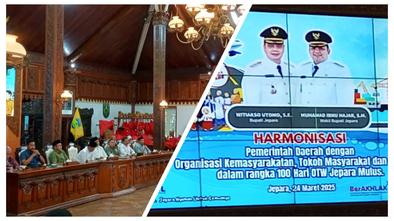 Jepara,transnewss.com – Pemerintah Kabupaten Jepara menggelar pertemuan di Pendopo RA Kartini dengan tema Harmonisasi Pemerintah Daerah dengan Tokoh Masyarakat, Organisasi Masyarakat, dan Media dalam rangka 100 hari program Jepara Mulus.