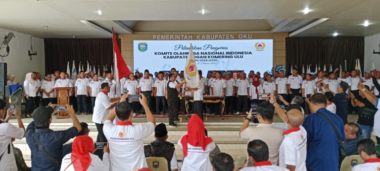 BATURAJA, transnewss.com – Babak baru pembinaan atlet di Kabupaten Ogan Komering Ulu (OKU) resmi dimulai. Sebanyak 160 pengurus Komite Olahraga Nasional Indonesia (KONI) Kabupaten OKU masa bakti 2026–2030 resmi dikukuhkan dalam prosesi pelantikan yang berlangsung di Aula Pendopo Rumah Dinas Bupati OKU, Senin (16/2/2026) siang.