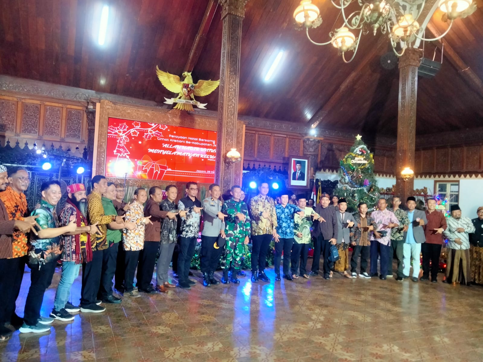 JEPARA, transnewss.com – Umat Kristiani di seluruh Kabupaten Jepara menggelar perayaan Natal bersama tahun 2025 dengan penuh sukacita. Acara yang mengusung tema “Allah Hadir Untuk Menyelamatkan Keluarga” ini dipusatkan di Pendopo Kabupaten Jepara pada Minggu (28/12/2025) mulai pukul 17.00 WIB.