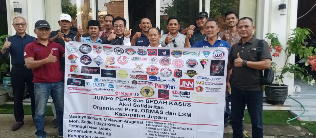 JEPARA,transnewss.com   –  Jumpa pers dan bedah kasus bersama wartawan dari berbagai organisasi pers dan aktivis LSM dan ORMAS serta perwakilan tokoh masyarakat di Kabupaten Jepara, Kamis siang – selesai (6/6/2024) berlangsung di kantor SEKBER DPP Insan Pers Jawa Tengah (IPJT) Jl. RMP Sosrokartono, Kelurahan Bapangan, Kecamatan Jepara. Mereka berkumpul guna menyatukan visi dan misi untuk mengawal kasus oknum Kades atau Petinggi Desa Lebak, Kecamatan Pakis Aji, Kabupaten Jepara yang patut diduga melakukan tindakan arogansi terhadap profesi seorang wartawan.