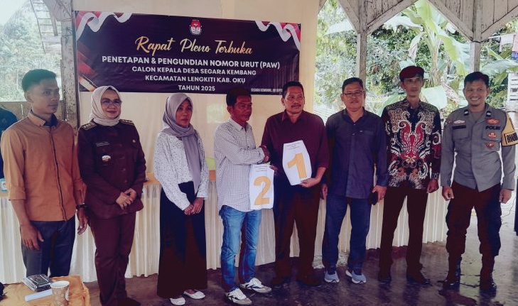 OKU, transnewss.com – Tahapan penting Pemilihan Antar Waktu (PAW) Kepala Desa Segara Kembang, Kecamatan Lengkiti, Kabupaten Ogan Komering Ulu (OKU), telah dimulai. Acara pengundian nomor urut calon digelar pada Selasa, 9 September 2025, di Balai Desa Segara Kembang dan berlangsung lancar dengan pengamanan ketat dari pihak kepolisian.