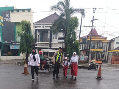 Kegiatan ini rutin dilakukan oleh anggota Polri pada jam-jam sibuk baik di persimpangan jalan, penggalan jalan dan di depan Sekolah, seperti ini tampak personil Polsek Mlonggo jajaran Polres Jepara membantu menyeberangkan anak sekolah di SMPN 1 Mlonggo dan Madrasah Ibtidaiyah Mathalibul Huda Mlonggo, pada Senin (6/1/2024) pagi