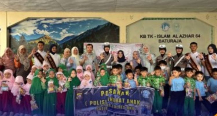 BATURAJA, transnewss.com  – Satuan Lalu Lintas (Satlantas) Polres Ogan Komering Ulu (OKU) mengunjungi KB-TK Islam Al Azhar 64 Baturaja pada Rabu (17/9/2025) untuk mengedukasi anak-anak tentang pentingnya keselamatan di jalan raya. Melalui program Polisi Sahabat Anak, para personel memperkenalkan rambu-rambu lalu lintas dan tugas Polantas dengan cara yang menarik.