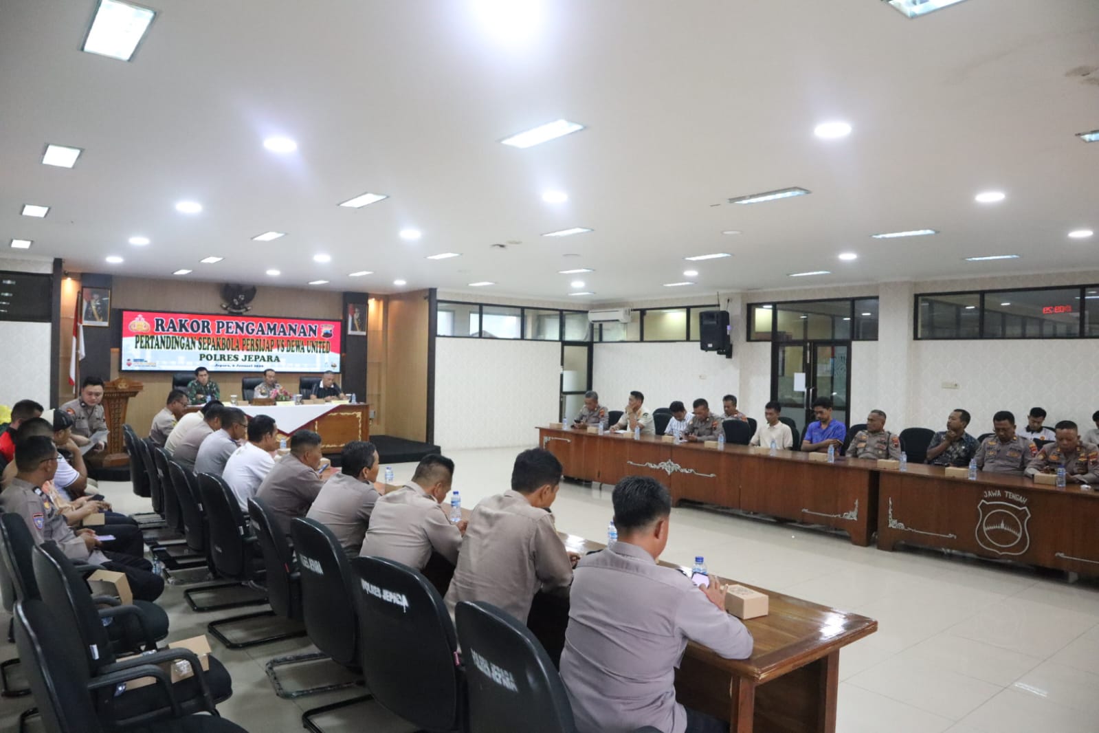 Jepara, transnewss.com – Persijap Jepara akan menghadapi Dewa United dalam laga pamungkas putaran pertama BRI Liga 1 2025/26 di Stadion Gelora Bumi Kartini Jepara, Senin (12/1/2026). Sebelum pertandingan berlangsung, Polres Jepara melalui Polda Jawa Tengah menggelar rapat koordinasi persiapan pengamanan pada Jumat (9/1/2026) di aula Mapolres Jepara.