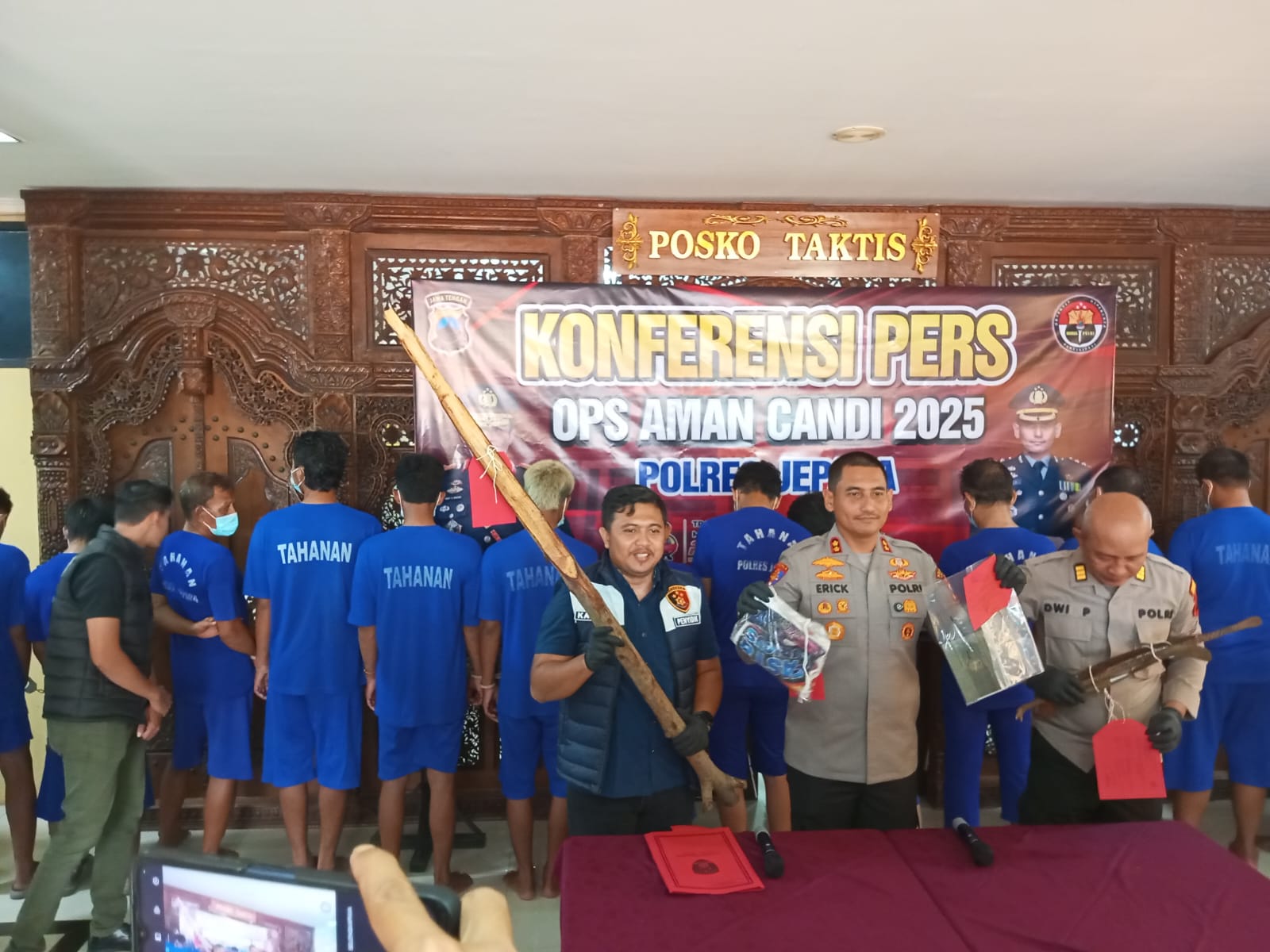 Kapolres Jepara AKBP Erick Budi Santoso, didampingi Kasatreskrim AKP M. Faizal Wildan Umar Rela dan Kasihumas AKP Dwi Prayitna, mengumumkan penangkapan ini dalam konferensi pers di Mapolres pada Rabu (21/5/2025).