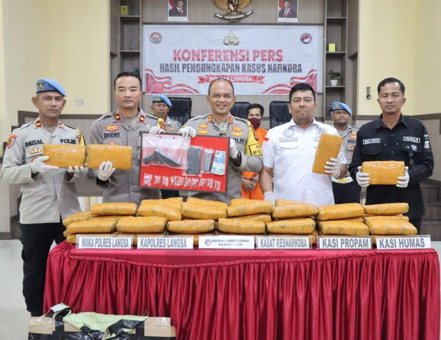 Kepolisian Resor Langsa berhasil mengungkap peredaran ganja dalam jumlah besar, dengan total barang bukti mencapai 58.850 gram. Kasus ini diungkap dalam konferensi pers yang diselenggarakan di Aula Adhi Pradana, Polres Langsa, Jumat (15/11), dipimpin langsung oleh Kapolres Langsa, AKBP Andy Rahmansyah, S.I.K., S.H., M.H., serta dihadiri oleh sejumlah pejabat kepolisian.