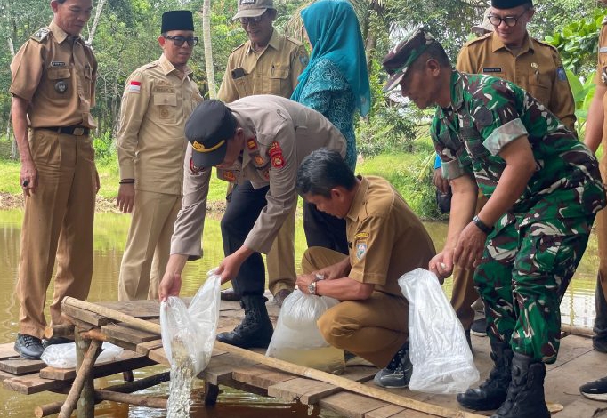 Polres OKU Dukung Aksi Restocking dan Bantuan Benih Ikan oleh Bupati di Lubuk Raja