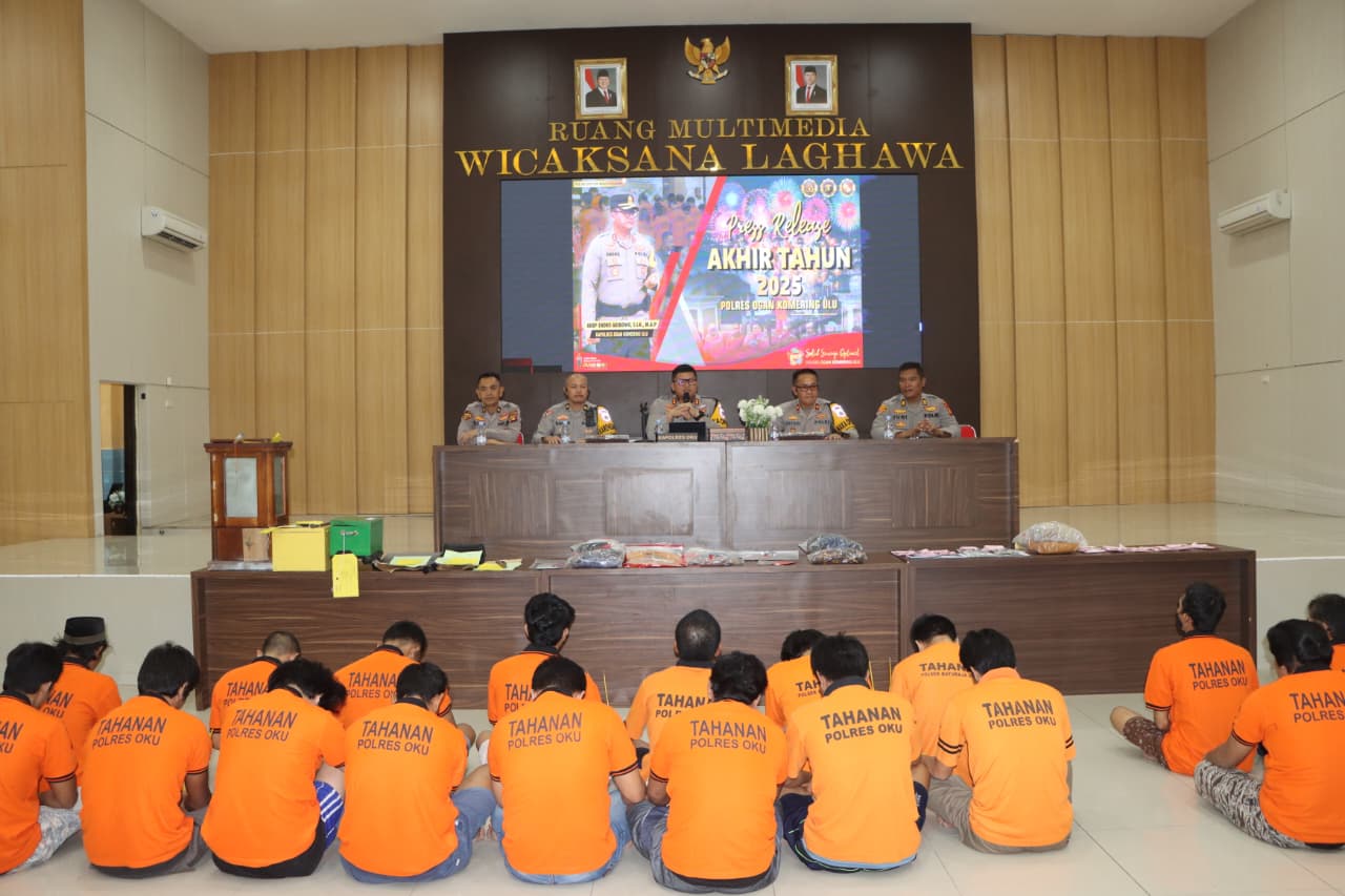 Baturaja, transnewss.com  – Menjelang pergantian tahun 2025/2026, Polres Oku menggelar kegiatan press release akhir tahun di Gedung Multimedia Wicaksana Laghawa Polres Oku pada hari Rabu (31/12/2025).