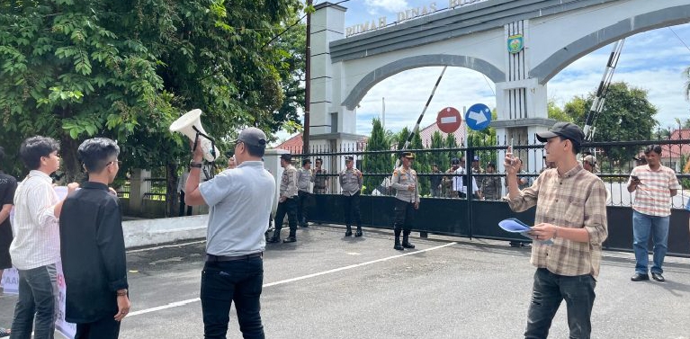 OKU, transnewss.com – Jajaran Polres Ogan Komering Ulu (OKU) melaksanakan pengamanan aksi unjuk rasa yang digelar Organisasi Masyarakat Anti Korupsi Sumatera Selatan (MARKAS) di Pendopo Rumah Dinas Bupati OKU, Senin (24/11/2025).