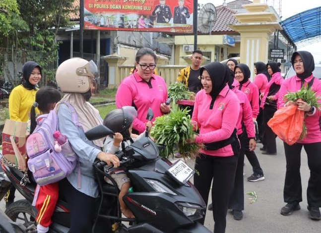 BATURAJA, transnewss.com – Jajaran Polres OKU memanen dan langsung membagikan sejumlah sayuran segar, seperti bayam dan kangkung, kepada masyarakat yang melintas pada Jumat, (10/10/2025). Sayuran ini merupakan hasil dari panen perdana program Pekarangan Pangan Bergizi (P2B) Polres OKU.
