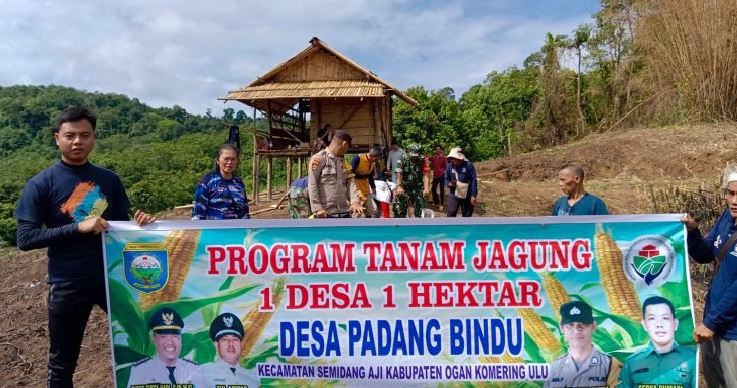 OKU, transnewss.com  –  Kepolisian Sektor (Polsek) Semidang Aji, bersama unsur pemerintah desa dan masyarakat, menunjukkan komitmen nyata dalam mendukung program ketahanan pangan nasional. Komitmen tersebut diwujudkan melalui kegiatan penanaman jagung serentak di Desa Padang Bindu, Kecamatan Semidang Aji, Kabupaten Ogan Komering Ulu (OKU).