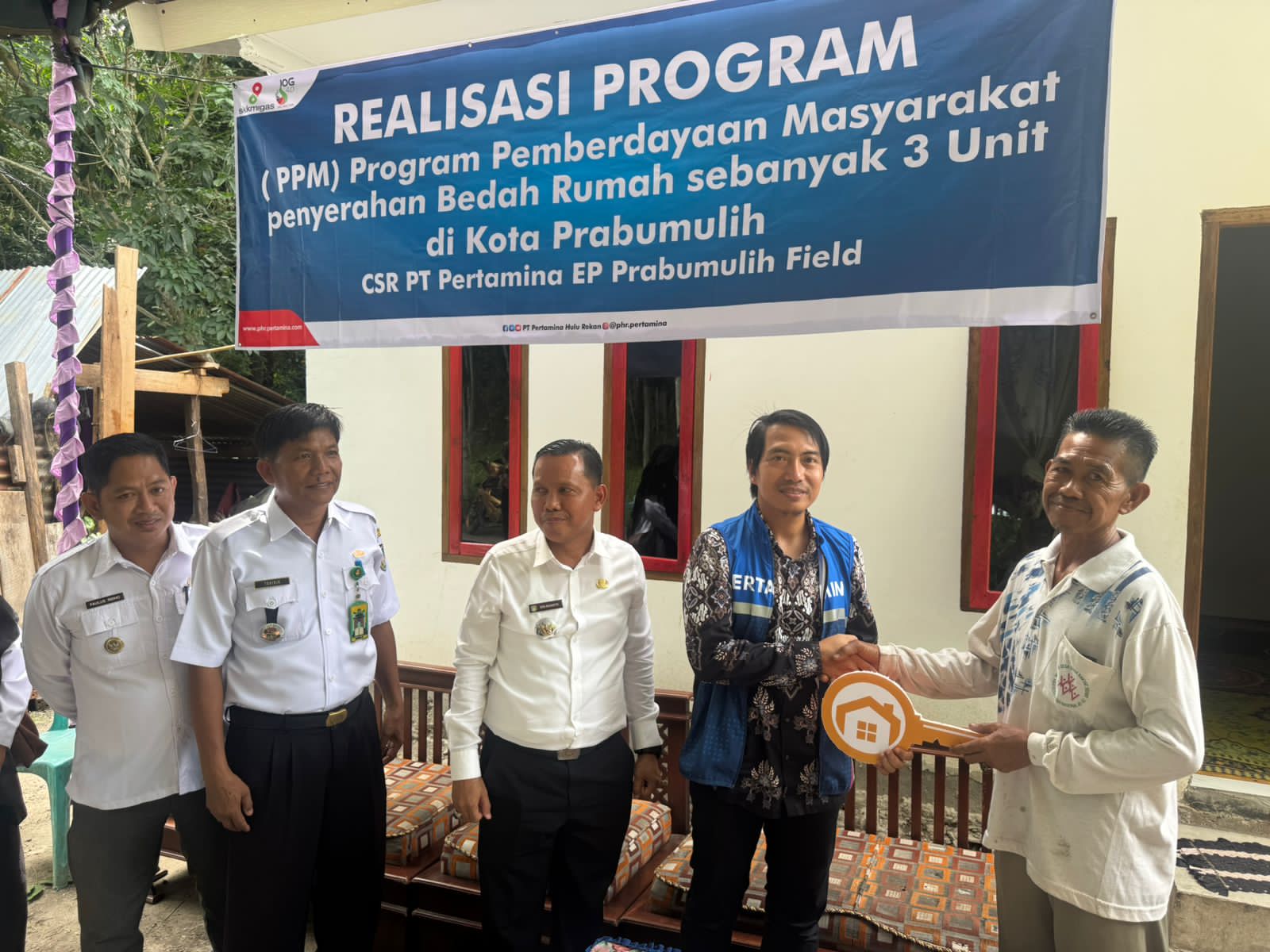 Prabumulih,transnewss.com  –   program pemberdayaan masyarakat (PPM), Penyerahan bedah rumah sebanyak 3 unit, merupakan CSR Pt. Pertamina, untuk rumah tidak layak huni.bertempat di kebun Duren kelurahan prabumulih Barat. (Rabu, 4/12/24).
