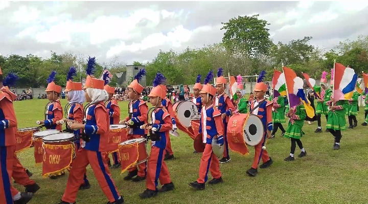Semarak HUT ke-80 RI di OKU, SDN 30 Tampil Memukau dengan Drumband