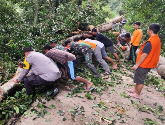 “Dalam kegiatan pembersihan ini, aparat TNI dan Polri dibantu warga masyarakat menggunakan alat seadanya memindahkan pohon yang tumbang. Akses jalan kini sudah kembali normal dan dapat dilalui kendaraan,” ujar Ipda Chandra.