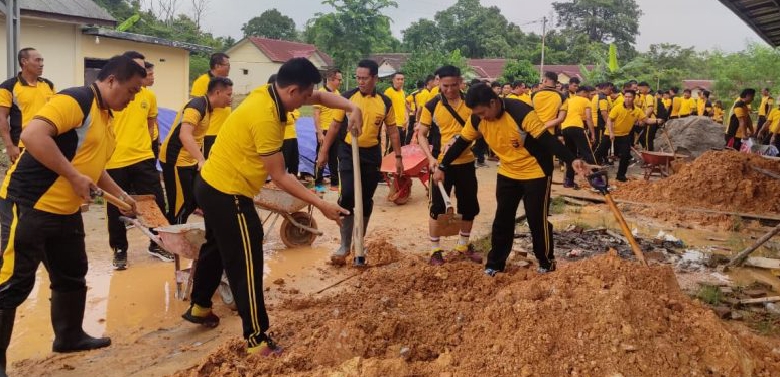 Fokus utama kurve kali ini adalah penimbunan lantai gedung bakal Satuan Pelayanan Pemenuhan Gizi (SPPG) Polres OKU, yang saat ini masih dalam tahap persiapan pembangunan.