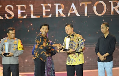Penghargaan diterima AKBP Wahyu di Pandanaran Grand Ballroom Padma Hotel, Semarang, pada hari Selasa (30/4/2024). Abituren Akpol 2003 mendapat penghargaan Anugerah Figur Akselerator Pembangunan kategori ‘Inovator Perlindungan dan Pengayoman Masyarakat’.