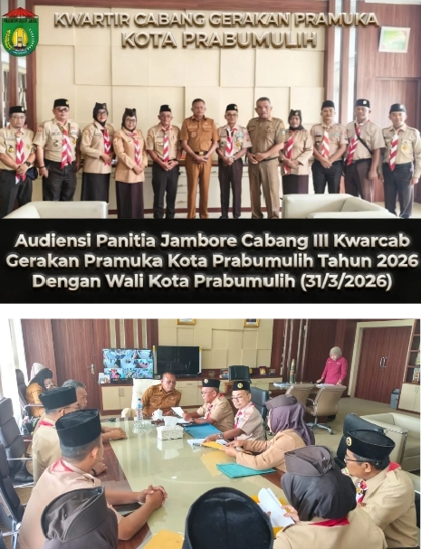 Prabumulih, transnewss.com  – Harapan besar untuk masa depan kota terkandung dalam pertemuan yang diadakan di ruang kerja Wali Kota, Selasa (31/3/2026). Pada kesempatan itu, H. Arlan menerima kunjungan panitia penyelenggara Jambore Cabang (Jamcab) III Kwartir Cabang Gerakan Pramuka Kota Prabumulih.