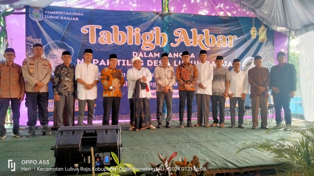 Acara Tabligh Akbar ini bertujuan untuk memperkuat solidaritas sosial di tengah arus globalisasi yang semakin deras. Acara ini dihadiri oleh berbagai tokoh penting, termasuk Kepala Desa Lubuk Banjar, H.M. Hanim Dwi Purwanto, Wakil Ketua 1 DPRD OKU, Yudi Purna Nugraha, SH, Asisten 3, H. Romson Fitri, SH, MH, serta Ustadz KH. Bagja Iskandar, SH, MH. Hadir pula Camat Lubuk Raja, Ogan Amrin, S.IP, dan Kapolsek Lubuk Raja, Ipda Indra Gunawan.